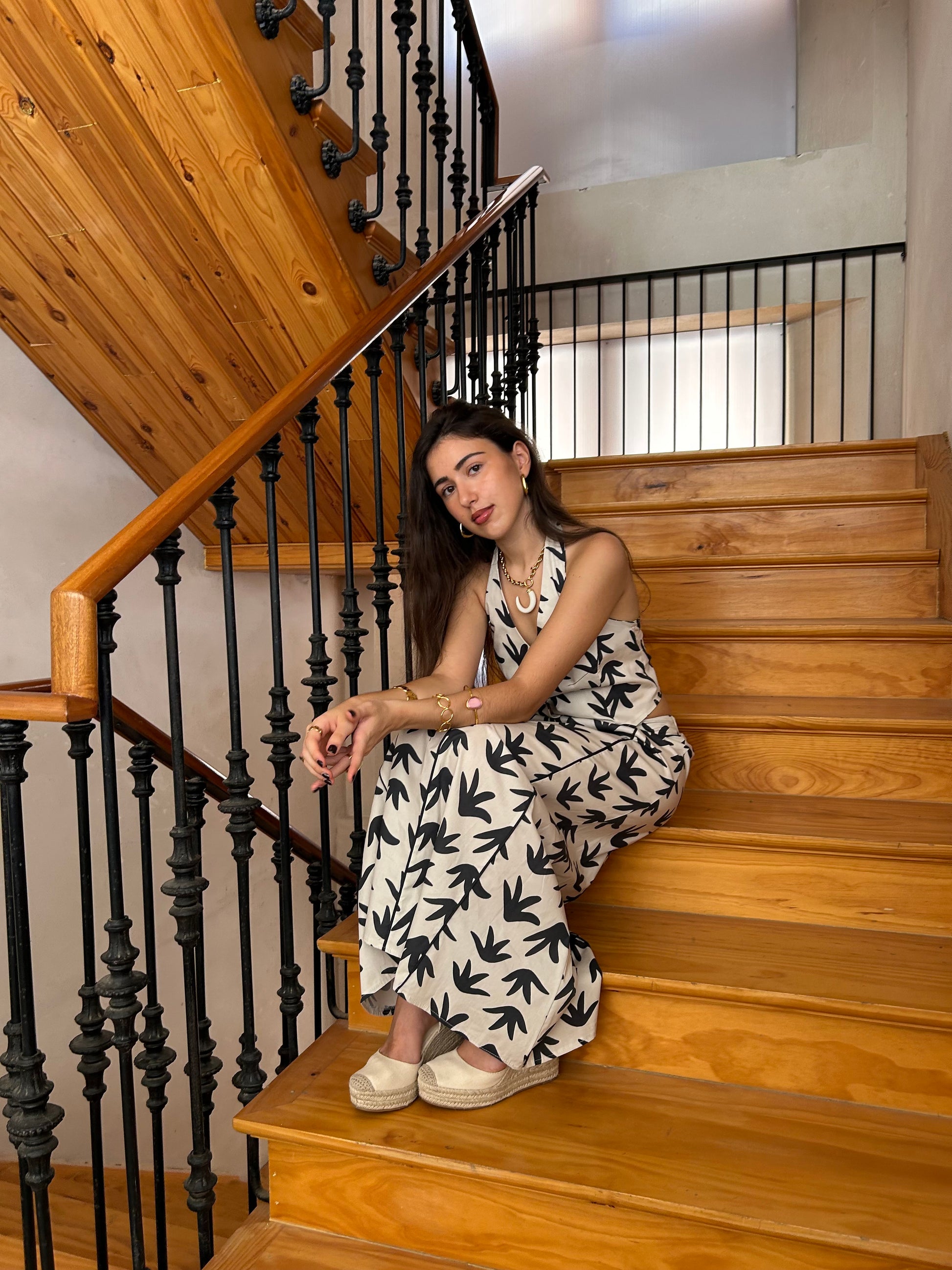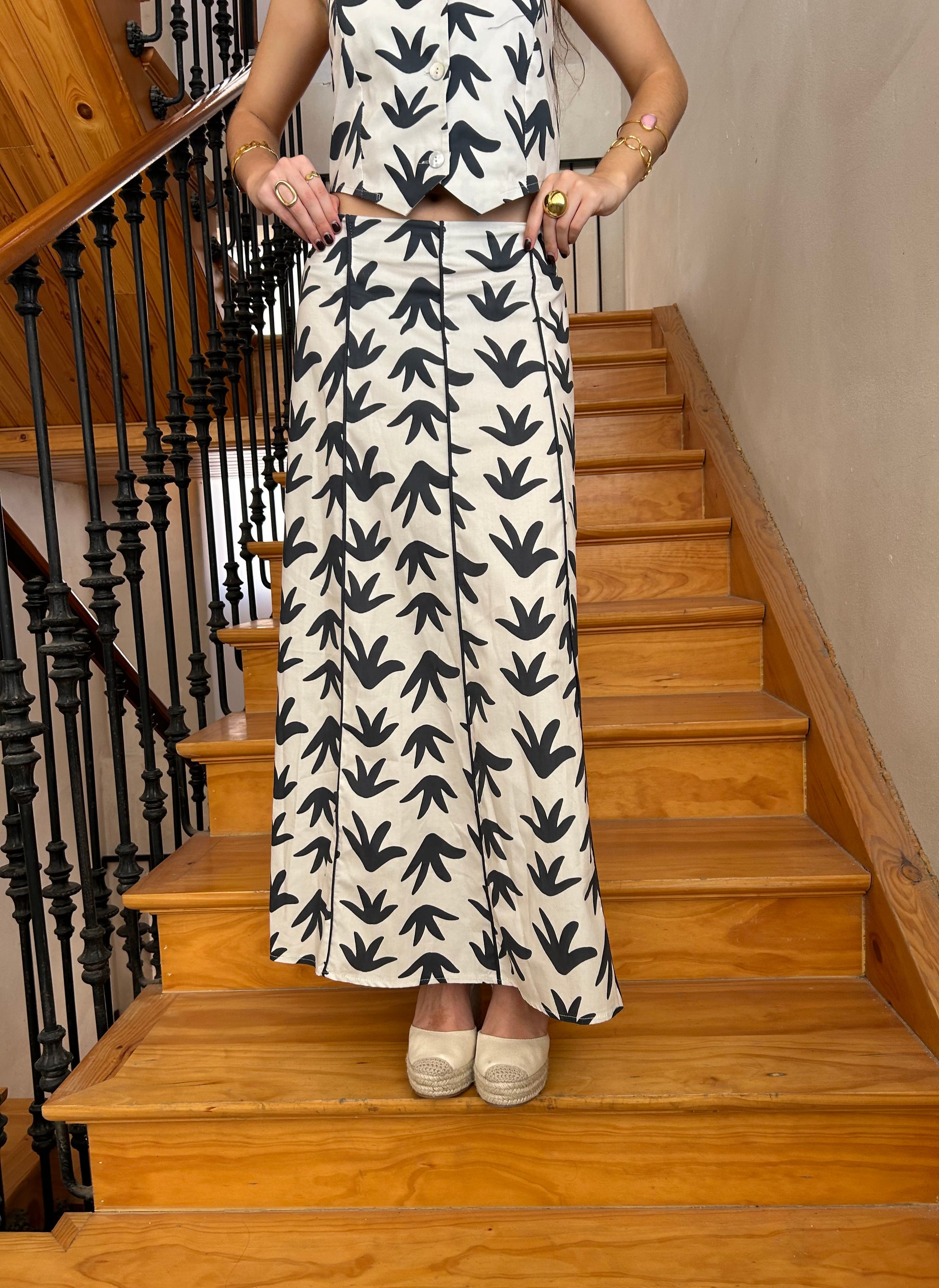 Es la pieza ideal para combinar con la falda del mismo estampado, aunque también funciona genial con vaqueros o pantalones de lino para crear looks más relajados pero igual de especiales.